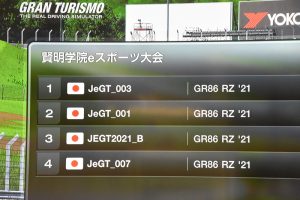そんなeスポーツ体験のレースで、2周合計のベストタイムがランキング形式で記録され、上位3名がプロである山本秀弥選手に挑戦できるエキジビションレースへの出場権を獲得しました。