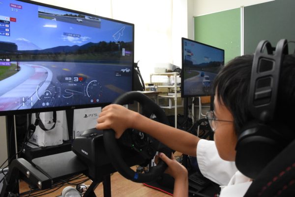 秋麗祭2日目にアトラクションの1つとして毎年eスポーツ体験を奉献会様が実施してくださっていますが、今年はeモータースポーツ体験としてプレイステーションのソフト「グランツーリスモ7」での実施となりました。