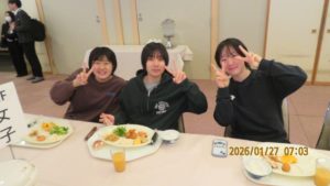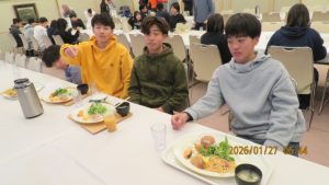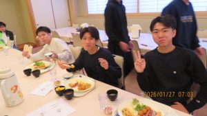 昨夜からの雪もやみ、絶好のスキー日和となりました。まずは朝ごはんをいただいてエナジーチャージです。