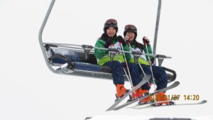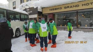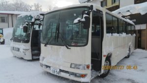 スキーウエアに着替えてホテルからゲレンデまでシャトルバスで移動します。