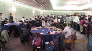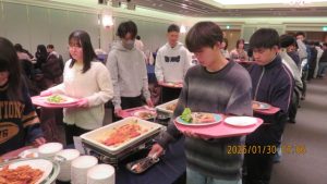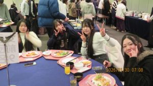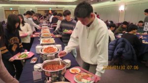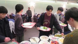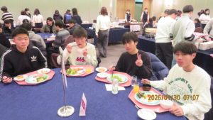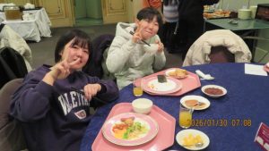 いよいよ研修旅行も最終日を迎えました。荷物をまとめて朝の点呼を受けて、トラックに積み込んだ後朝食をいただきました。