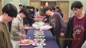 今回の北海道研修旅行は先週から降り続いた大雪の影響で移動手段に大きな影響を受け、行程を大幅に変更しながら旅を続けていきました。特に前団のABC組は、初日は関西空港で、最終日は新千歳空港で長時間過ごすことになり、えこりん村、北一条教会でのミサ、小樽観光など行くことができなかったのが残念でした。しかし、ニセコでは三日間ともに絶好のスキー日和に恵まれ、抜けるような青空、雄大な羊蹄山を眺めながら、JAPOWの最高級雪質の中でそれぞれのレベルに応じてスキーを体験できたのは大変幸せなことでした。スキー講習の合間も雪合戦や雪だるまづくりを楽しみ、関西では経験できないことを堪能していました。学年レクレーションも修学旅行委員たちの尽力で大いに盛り上がりました。露天風呂での雪合戦など先生方に怒られたこともありましたが、旅行期間中病院へ行くようなケガや体調不良者はなく、みんなそろって行動できたことは何よりでした。早朝から深夜まで指導してくださった先生方、西田さんはじめとする近畿日本ツーリストの添乗員の皆様、重たいカメラ機材を背負って、雪山に限らずみんなの写真を撮影してくださった中前さん、そしてスキー学校のインストラクター、ホテルやバスなどお世話になった現地のすべての方々、そしてそのすべてを守り導いてくださった神様に心から感謝いたします。学校に帰れば事実上の最上級生です。賢明学院を率いる本体の一人となって残りの高校生活に励んでください。神様、本当にありがとうございます。主イエスキリストによって、アーメン。団長 石森圭一