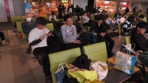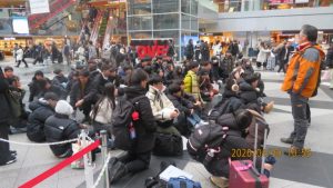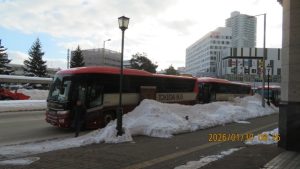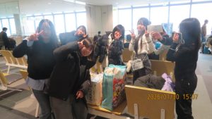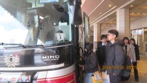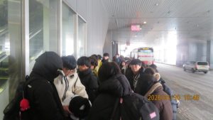 羊ヶ丘展望台を出発し、無事に着くことを祈りながら新千歳空港を目指します。なおここで前団と後団に分かれ、後団はえこりん村でトントン鍋の昼食を取ってから空港に向かいました。