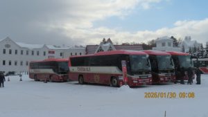 朝食後バスに乗り込み羊ヶ丘展望台に向かいます。