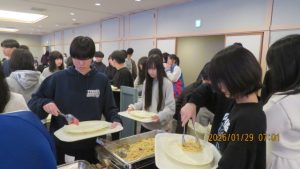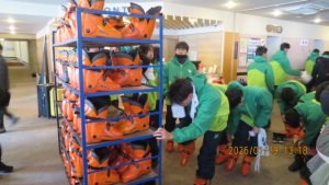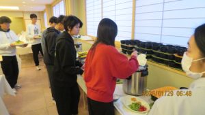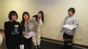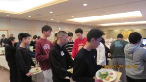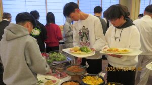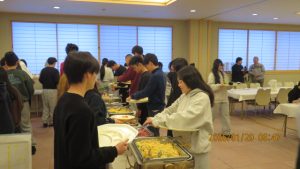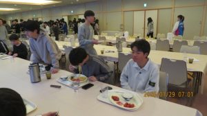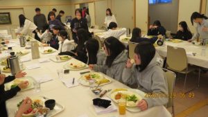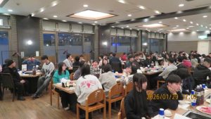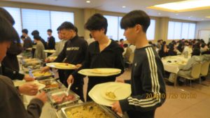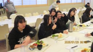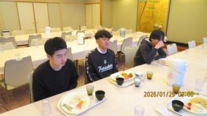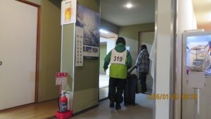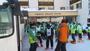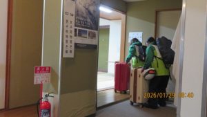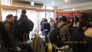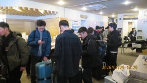 この後19時半ごろにホテルエミシアに到着し、着いたクラスから順次荷物をもって2階のツアーデスクでルームキーを受け取り、チェックインしました。この後は部屋での入浴など自由時間となりました。明日はいよいよ最終日です。荷物整理ができたらしっかりと睡眠をとってスキー実習やバスの長旅の疲れを癒してください。