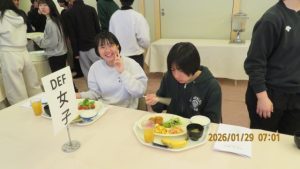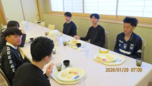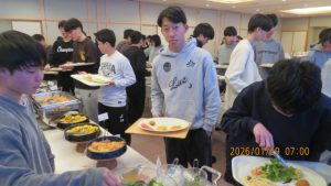 本日は快晴の朝を迎えました。朝の点呼を受けて朝食をいただきます。
