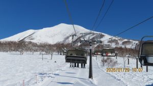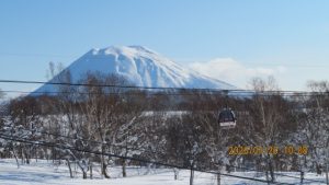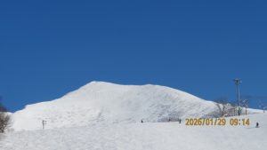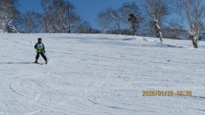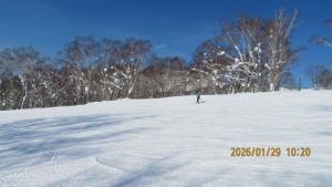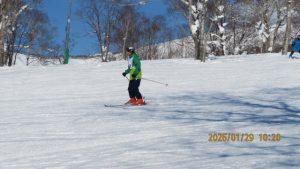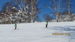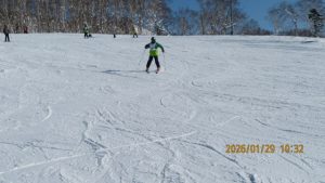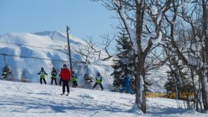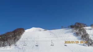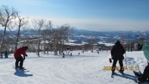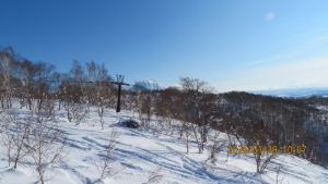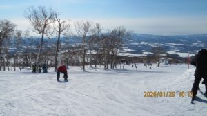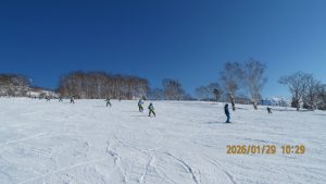 ゲレンデに着くとゴンドラ山頂まで見渡せる青空のもとの白銀の世界でした。