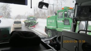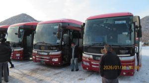 ホテルの戻りレンタル用品の返却、更衣をしてバスに乗り込み出発します。