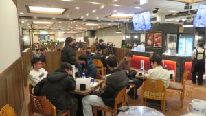 大雪による交通状況悪化のため、北一条教会でのミサはキャンセルとなり、夕食会場のアサヒビール園に直行しました。17時にアサヒビール園に着くことができました。